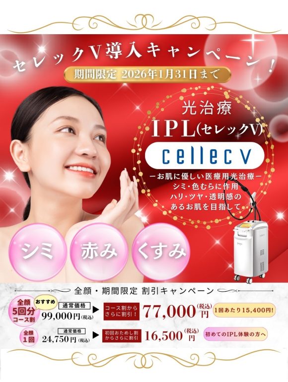 IPL・セレックV 新規導入キャンペーン|くすみ・シミ・赤みケアを始める冬に【2026年1月末まで】